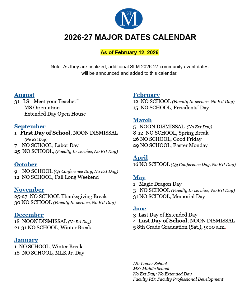 For planning purposes, major dates for the CURRENT 2026-2027 school year are available below.